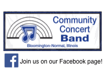 Music to titillate tapping toes, young and old alike! The Bloomington-Normal Community Concert Band (CCB) performs a variety of concerts throughout the year around Central Illinois. From concerts Miller Park, Wesley Methodist Church, and Westminster Village, to the every-Thursday-night summer concerts in Franklin Park, to parade appearances for events in places around central Illinois.